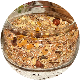Oatmeal is fiber-rich! The fiber of note in oatmeal is beta-glucans, which make up +/- 5% of raw whole oats. Beta-glucans are soluble fiber that is known to reduce blood sugar, lower LDL cholesterol levels (to help protect your heart), and increase bile acid production.